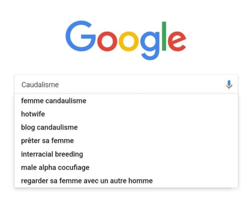 Son historique de recherche Google est vraiment intéressant et il n’y a que des choses sur « ma copine qui se fait pilonner par un homme supérieur, caudalisme, creampie cleaning… »